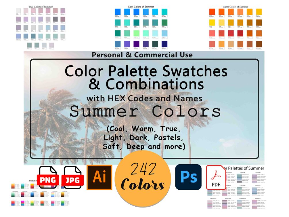 Refresh your creative projects with this Summer Color Palette Collection featuring 242 vibrant seasonal shades. From cool ocean blues to sun-kissed warm tones, this pack gives you everything you need to design with a true summer feel โ perfect for graphic designers, illustrators, digital artists, and creatives working on fresh, colorful projects.