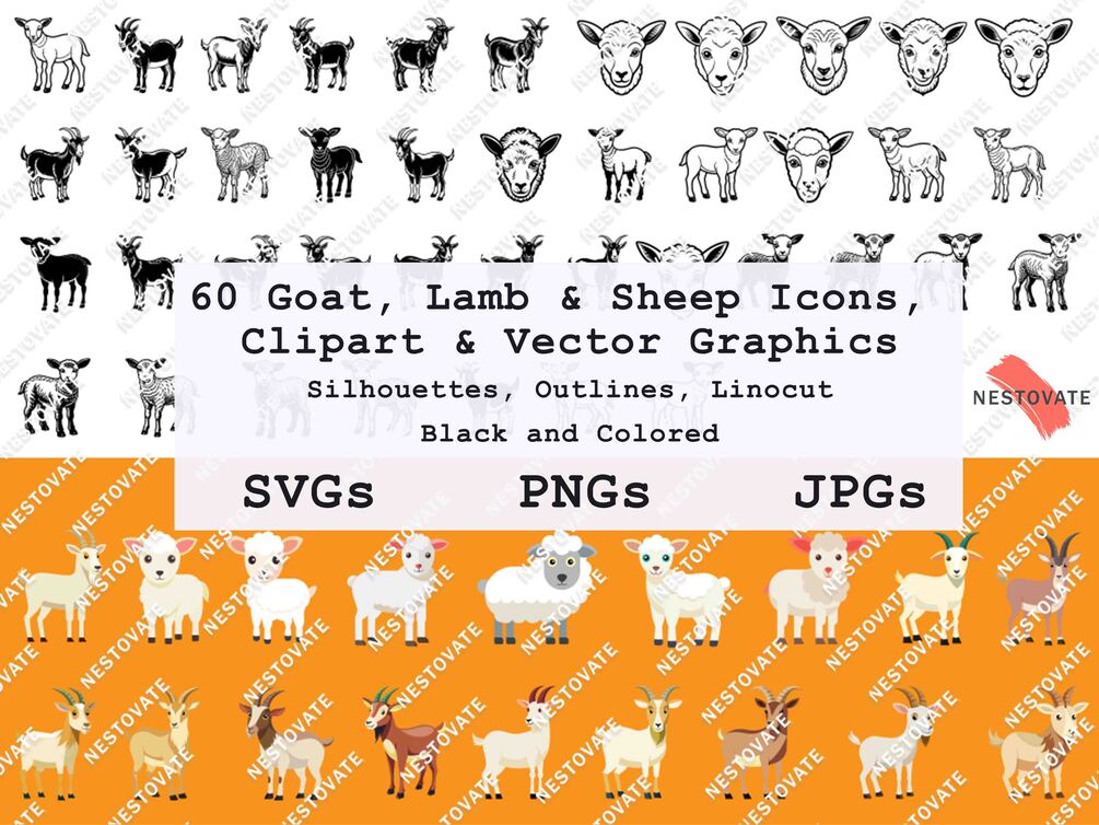 60 Svgs, Pngs, JPGs, of Goat, Sheep & Lamb